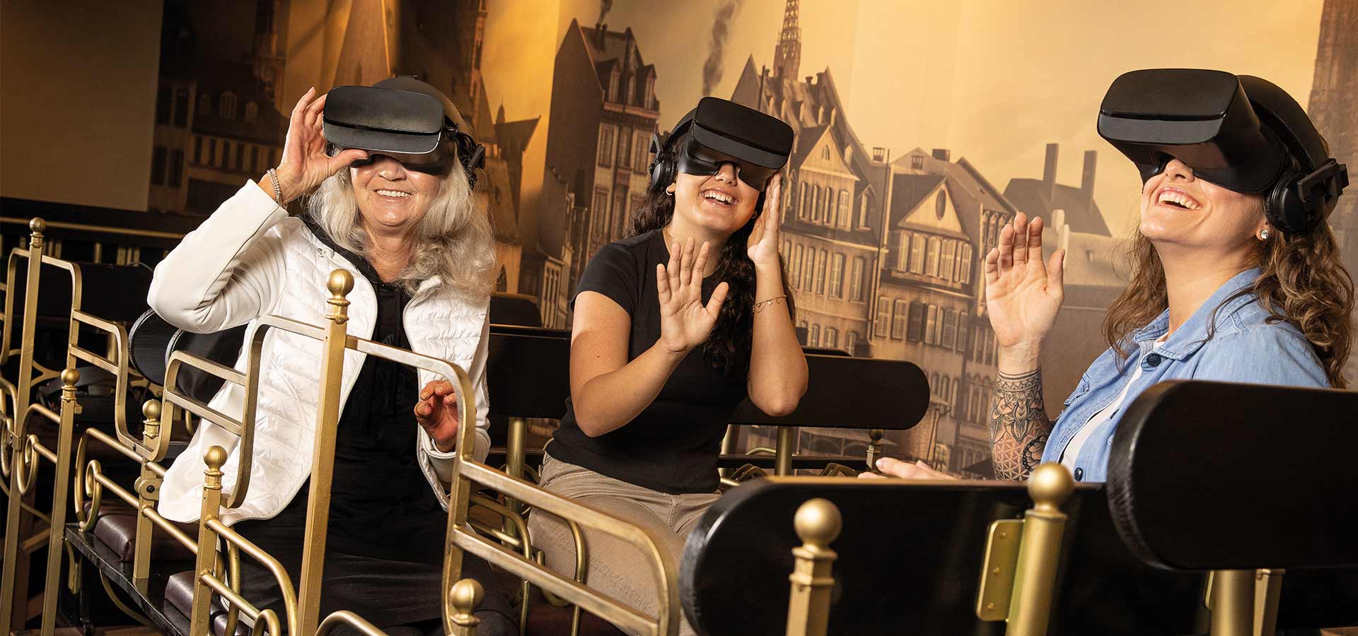 It is the highlight of your time travel in Frankfurt and it takes you to one of the most significant events of 1891. You take a seat in a real carriage and go on a virtual journey to the Main metropolis before its destruction in World War II. With your VR goggles, you’ll enjoy a 360° all-around view and set off for a literally electrifying finale.